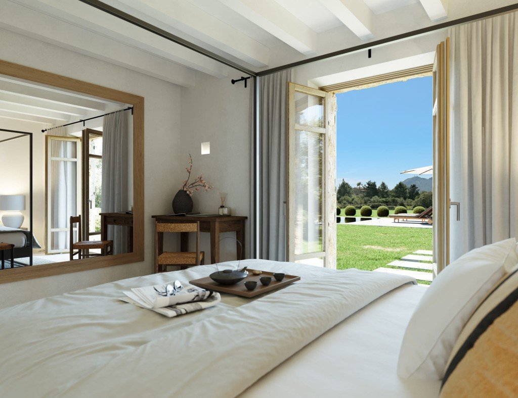 Wir präsentieren dieses faszinierende Architekturprojekt eines großzügigen und wunderschönen Finca-Projekts in Pollensa mit freiem Blick und den besten Qualitäten im mallorquinischen Stil.