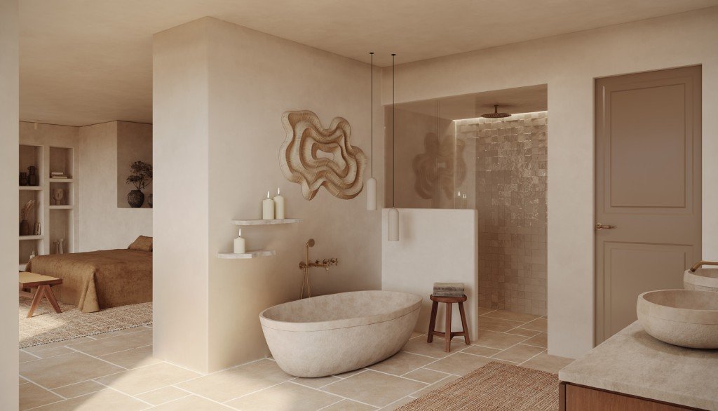 Die Immobilie überzeugt durch eine natürliche, harmonische Atmosphäre, bei der jedes Detail mit viel Liebe zur traditionellen Handwerkskunst gestaltet wurde. Zu den hochwertigen Ausstattungsmerkmalen gehören massive Innenwände (kein Trockenbau), recycelte historische Holzbalken, handgefertigte Waschbecken aus Naturstein und Kupferregenrinnen.