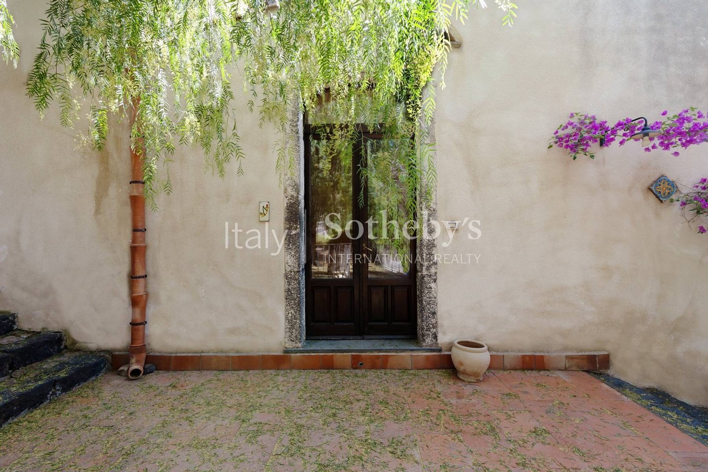 Zwischen den Hängen des Ätna, Taormina und Castiglione di Sicilia erhebt sich ein historisches Anwesen, eingebettet in üppiges Grün, das einen außergewöhnlichen Panoramablick auf die Küste bietet und eine Atmosphäre absoluter Ruhe vermittelt.Die größtente