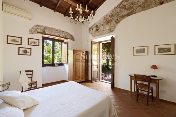 Die größtenteils renovierte Liegenschaft erstreckt sich über ca. 3,5 Hektar Land mit ertragreichen Oliven- und Orangenhainen und verfügt über einen Panorama-Swimmingpool mit Meerblick. Das Anwesen gliedert sich in drei Hauptgebäude: die herrschaftliche Villa, einen ehemaligen Stall - heute in mehrere unabhängige Wohneinheiten umgewandelt, ideal für touristische Nutzung - sowie ein antikes Lagergebäude, das noch restauriert werden muss, neben einer alten, derzeit ungenutzten Küche.