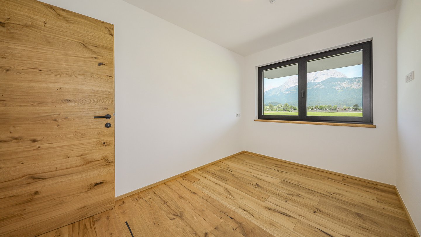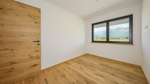 Der offene Wohn-Ess-Kochbereich bietet Ihnen ausreichend Platz und obendrein noch einen fantastischen Ausblick auf die umliegenden Berge.
