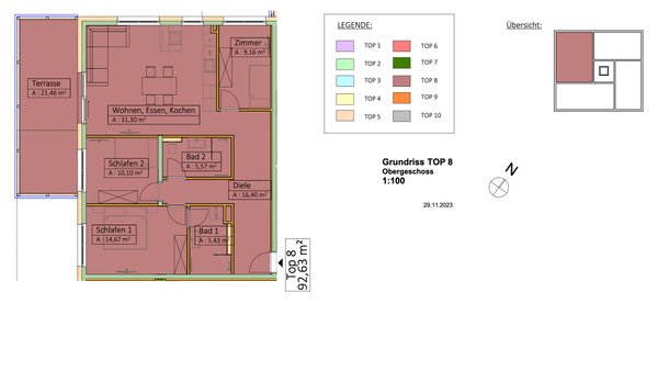 Top 8 mit 92,63 m² Wohnfläche, 21,46 m² Terrasse, 4 Zimmer, 3 Schlafzimmer, 2 Bäder um 907.774 €