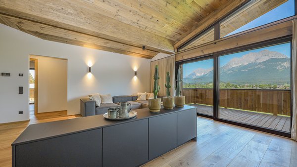 Das Penthouse „ZUM WILDEN KAISER“ bietet einen unbeschreiblichen Fernblick auf das gesamte Massiv des Wilden Kaisers und die umliegenden Berge. Aber nicht nur der gebotene Ausblick ist sehenswert, auch das Apartment selbst überzeugt durch die durchdachte Raumplanung.
