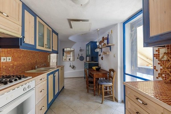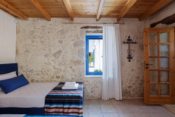 Im Inneren verfügt das Haus über drei geräumige Schlafzimmer und drei moderne Badezimmer, die durchdacht angeordnet sind und sowohl Privatsphäre als auch Funktionalität bieten. Natürliches Licht durchflutet die Innenräume und unterstreicht das geschmackvolle Design und die harmonische Balance zwischen traditionellen Elementen und stilvollen Neuerungen. Von freiliegenden Steinwänden bis hin zu Holzbalkendecken spiegelt jeder Winkel des Hauses den Charme des kretischen Erbes wider, ergänzt durch den Komfort modernen Wohnens.