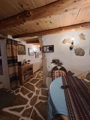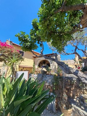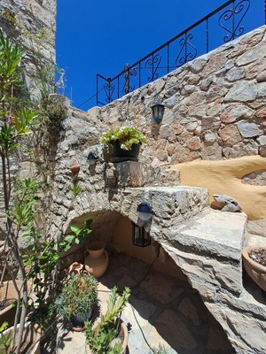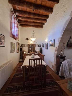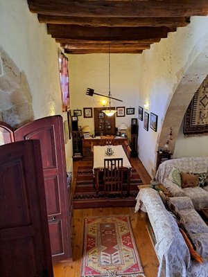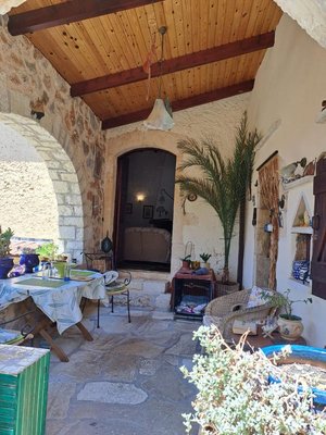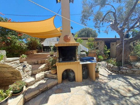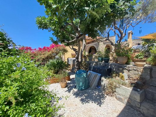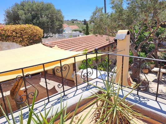 Dieses einzigartige Anwesen liegt in einem ruhigen kretischen Dorf, das seinen authentischen Charakter bewahrt hat. Es umfasst ein freistehendes Haupthaus und ein separates Studio mit insgesamt zwei Schlafzimmern und zwei Badezimmern sowie einem privaten Parkplatz abseits der Straße und einem gepflegten Garten.