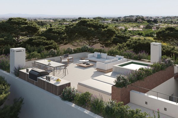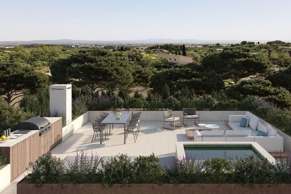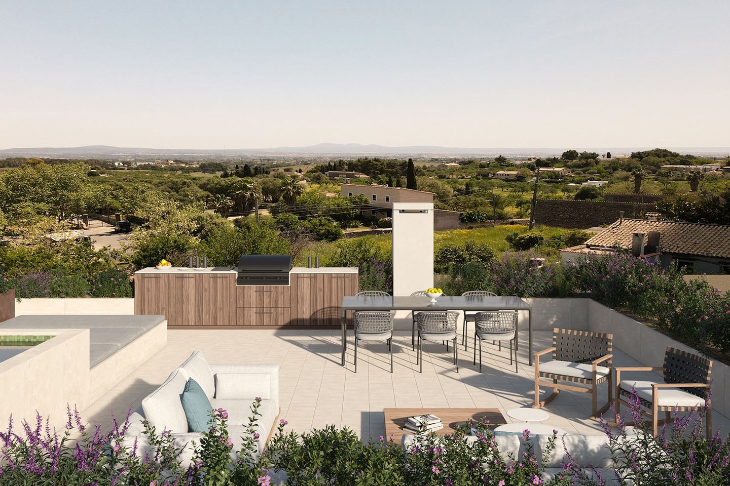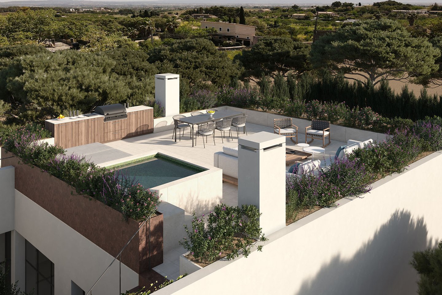 Ein besonderes Highlight ist die großzügige Dachterrasse mit Lounge-Bereich, integrierter Sommerküche und kleinem Pool – von hier aus eröffnet sich ein beeindruckender Blick auf die umliegende Landschaft.