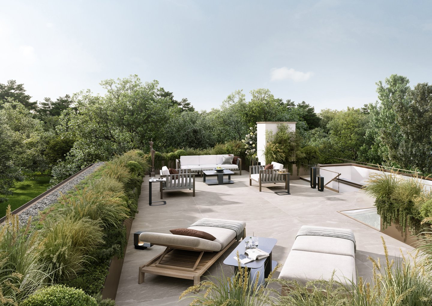Mit Wohnflächen von circa 144 m² bis circa 220 m² erstrecken sich die Wohneinheiten jeweils über eine komplette Etage – ein Konzept, das ein Höchstmaß an Privatsphäre garantiert. Besonders hervorzuheben ist das Penthouse mit seiner 76 m² großen Rooftop-Terrasse, die