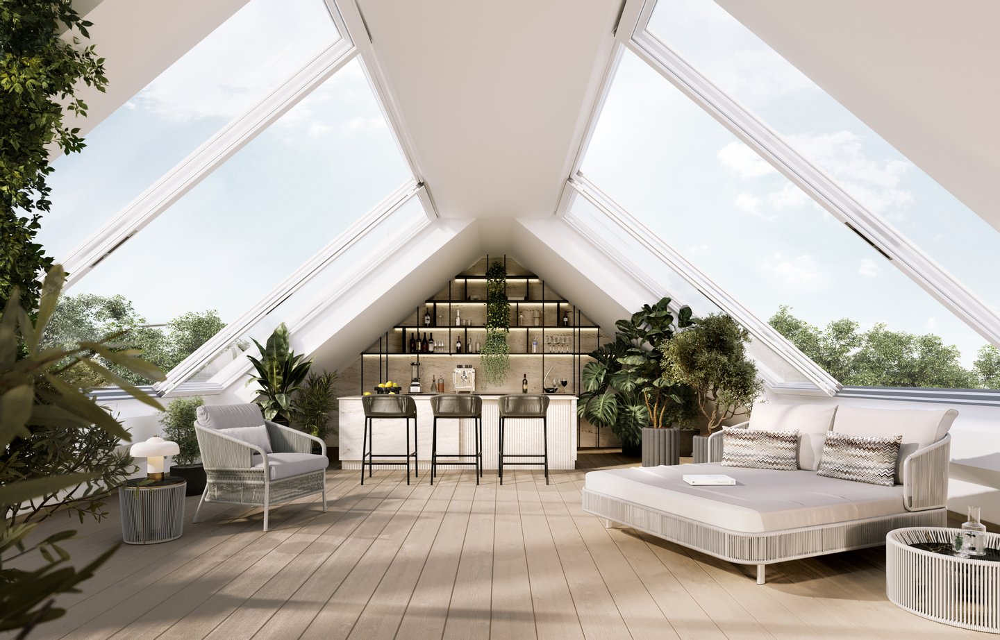 Alle Wohnbereiche sind mit hochwertigen, großformatigen und bodentiefen Holz-Aluminium-Fenster ausgestattet, die die Innenräume mit Helligkeit durchfluten. Sonnige und einladende Terrassen, Loggien und Privatgärten ergänzen die Wohneinheiten, laden zum Verweilen ein