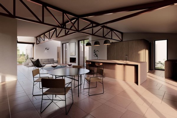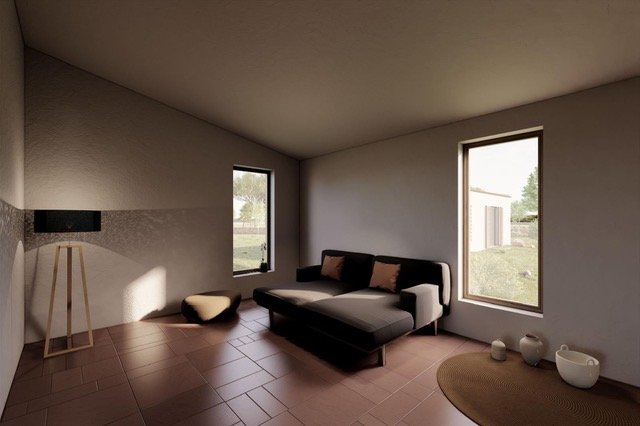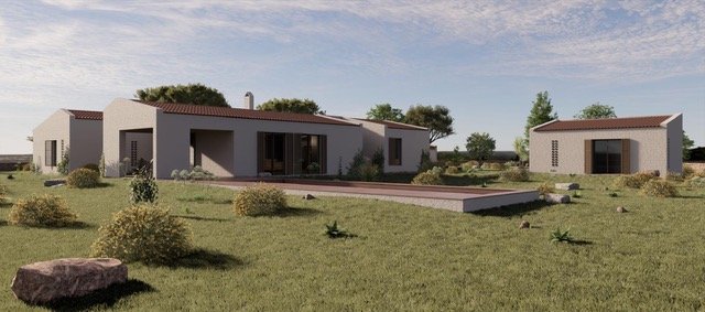 Das geplante einstöckige Haus erstreckt sich über 357 m² und verbindet modernen Komfort mit traditionellem mallorquinischem Design. Der Grundriss ist um einen zentralen Innenhof angeordnet und maximiert den Lichteinfall und den Fluss zwischen Innen- und Außenbereichen. Das Projekt umfasst drei Schlafzimmer mit eigenem Bad, einen offenen 93 m² großen Wohn-Ess-Küchenbereich, einen ruhigen Innenhof mit einem Baum und einem Brunnen sowie einen privaten Pool. Eine Solaranlage sorgt für Nachhaltigkeit und nahezu vollständige Selbstversorgung.