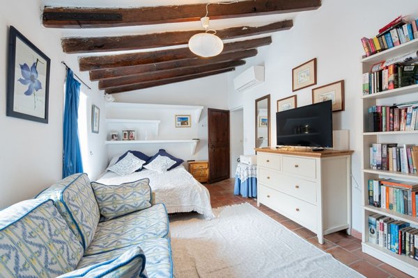 Im obersten Stockwerk bietet ein drittes Zimmer mit eigenem WC einen atemberaubenden Blick auf den Calvario und die Tramuntana-Berge und ist somit der perfekte Ort für ein Heimbüro oder einen kreativen Raum.