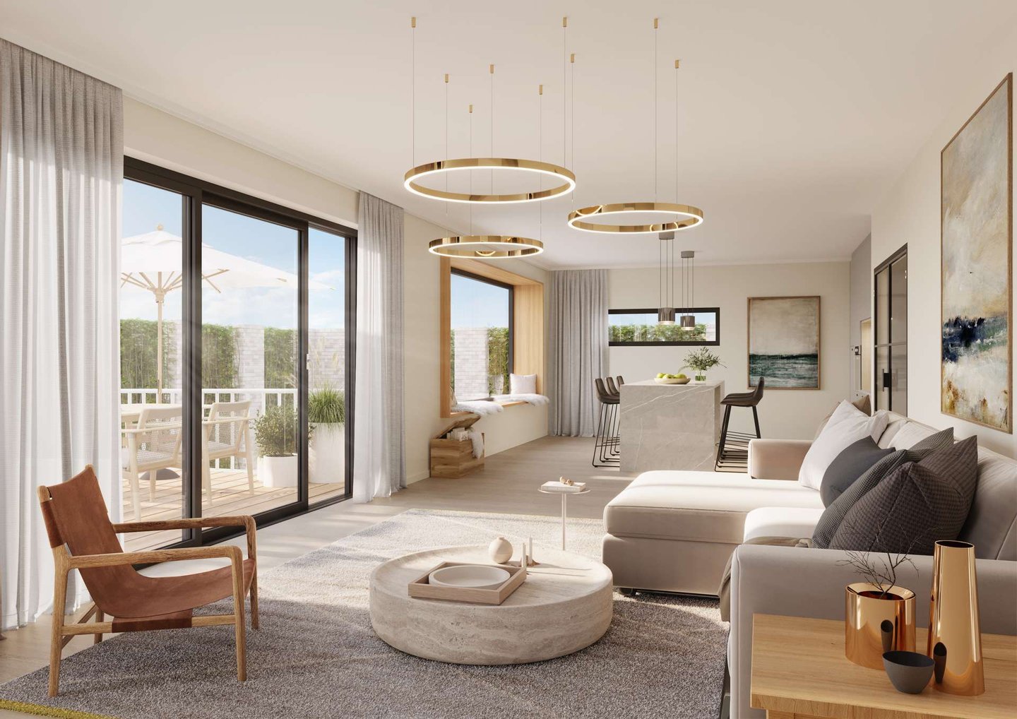 Die modernen Elemente harmonieren perfekt mit dem klassischen Design, und die raumhohen Fenster lassen viel Licht in die Räume.