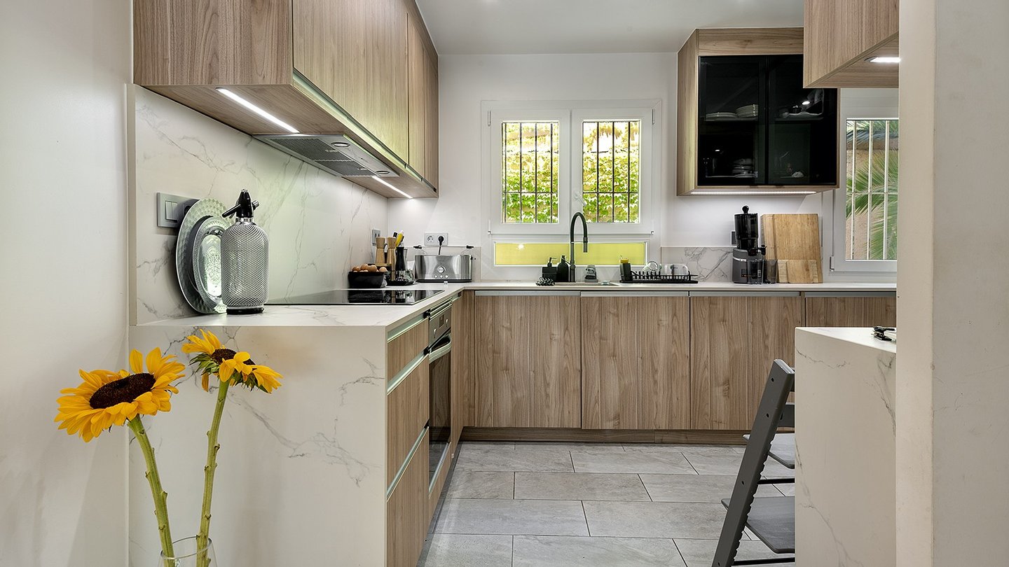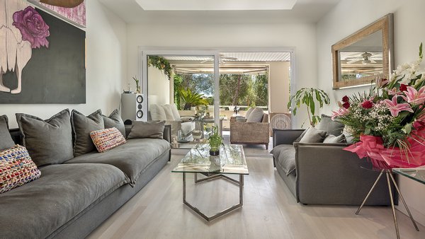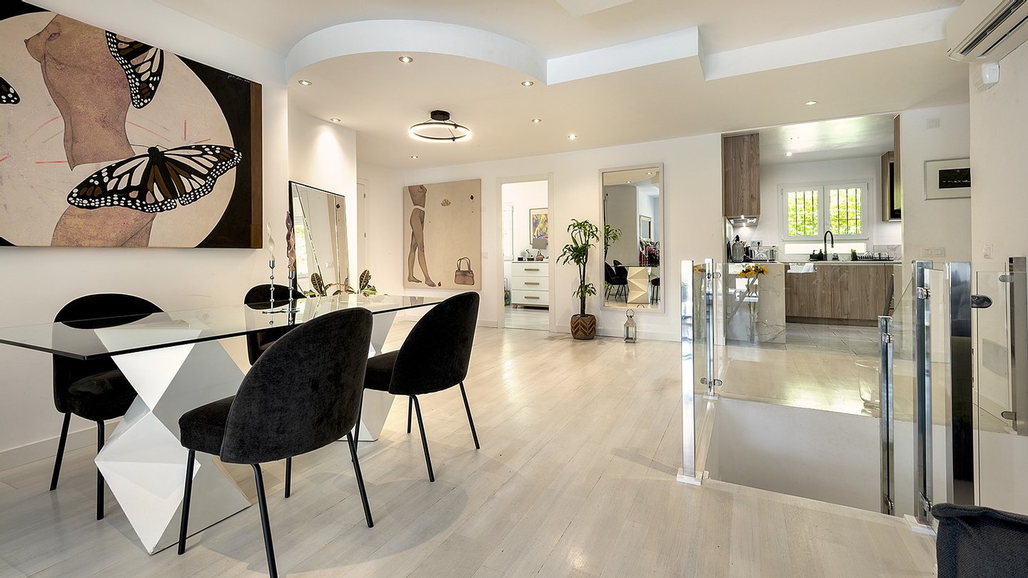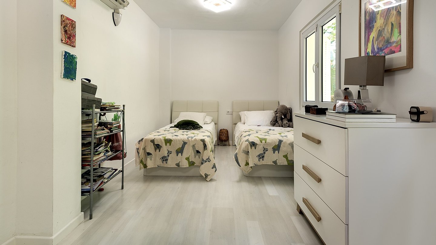 Auf einer großzügig bebauten Fläche von etwa 260 m², aufgeteilt auf zwei Ebenen, erwartet Sie ein hochwertiges, lichtdurchflutetes Zuhause, das keine Wünsche offenlässt. Die Duplexwohnung verfügt über insgesamt 4 Schlafzimmer, 3 Bäder (1 en-suite) sowie ein separates Gäste-WC . Damit steht Ihnen und Ihrer Familie viel Raum für Komfort, Entspannung und private Rückzugsmöglichkeiten zur Verfügung. Ganzjährig angenehme Temperaturen in den Räumlichkeiten sind dank einer Klimaanlage (W/K) gewährleistet. Der großzügige Wohnbereich im oberen Stockwerk besticht durch einen hochwertigen Parkettboden und große Fenster, die eine helle, freundliche Atmosphäre schaffen. Ebenfalls im oberen Stockwerk befindet sich die offene Einbauküche, welche mit modernen Elektrogeräten ausgestattet ist und sich perfekt für kreative Kochabende eignet. Darüber hinaus sorgen praktische Features wie ein Kellerraum unter dem Pool, ein großer Abstellraum, große Einbauschränke und ein Alarmsystem mit Fernüberwachung und intelligenter Zugangskontrolle für maximalen Komfort und zusätzliche Sicherheit. Ein echtes Highlight ist der eigene Weinkeller, der die Exklusivität der Immobilie unterstreicht. Abgerundet wird das Angebot durch einen ebenso geschmackvollen Außenbereich, bestehend aus einem schönen Garten mit automatischen Beleuchtungs- und Bewässerungssystemen sowie einem großzügigen Pool mit Außendusche und BBQ-Bereich. Des Weiteren kann ein Gemeinschaftspool von den Bewohnern der Anlage jederzeit genutzt werden. Letztlich steht Ihnen ein Tiefgaragenstellplatz zur Verfügung, gesichert durch ein elektrisches Garagentor.