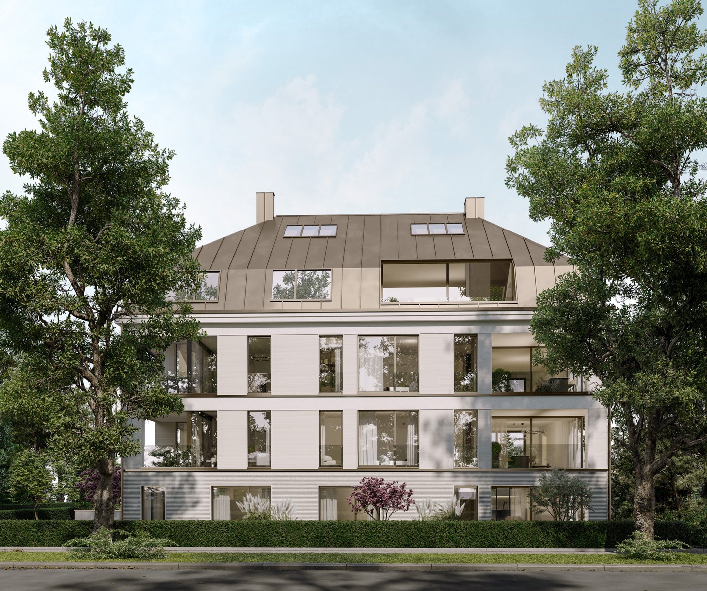 Das großzügige Eckgrundstück mit perfekter Süd-West-Ausrichtung ist nur wenige Gehminuten vom angrenzenden Schlossensemble entfernt. Die elegante Mehrfamilienvilla umfasst lediglich sieben Wohneinheiten, die den Blick ins Grüne maximieren und die Natur in die Räume holen.