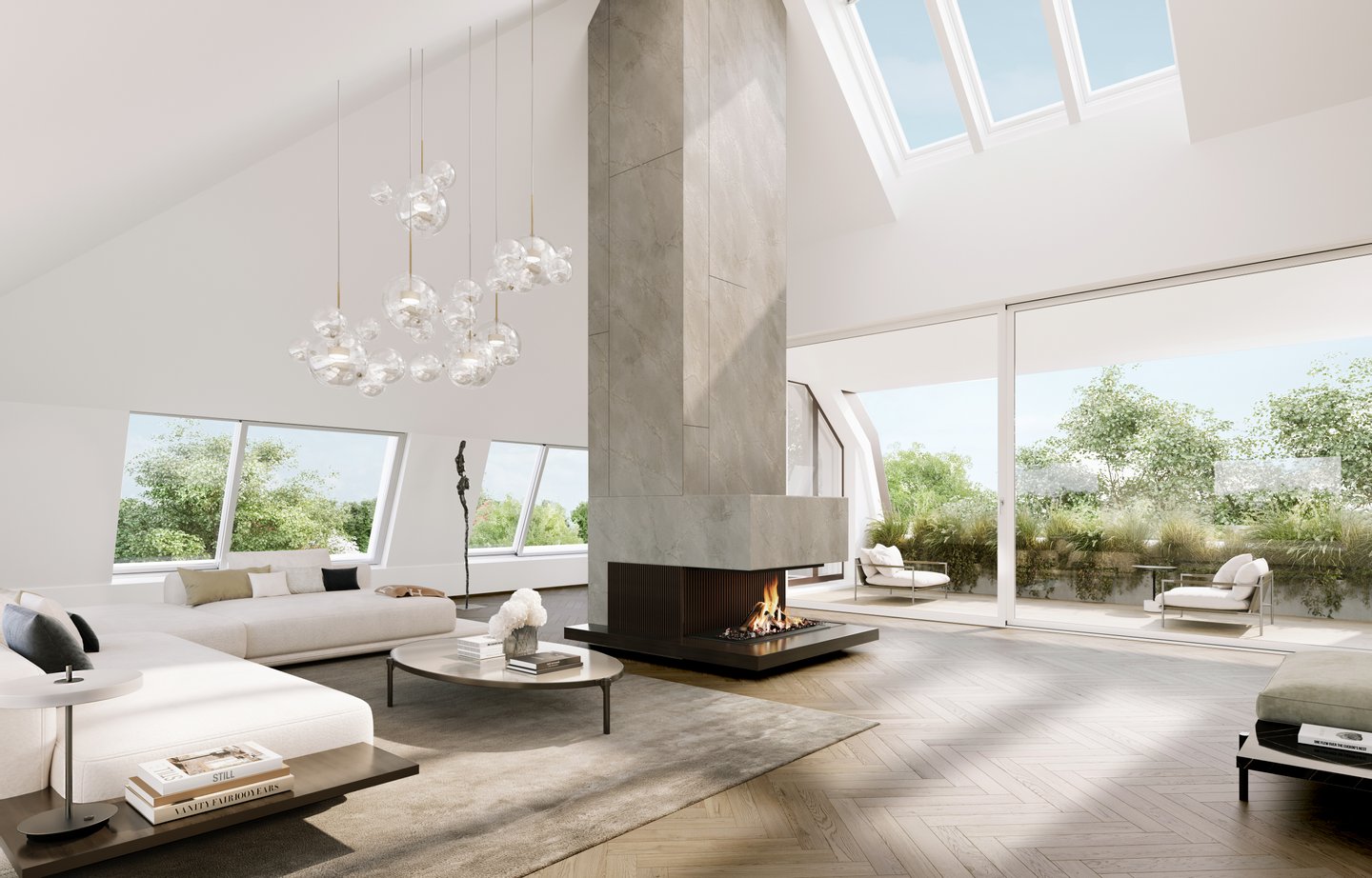 Die großzügigen Loggien und Terrassen sind lichterfüllt, kommunizieren mit dem Außen und schaffen eine fließende Verbindung zur malerischen Umgebung.