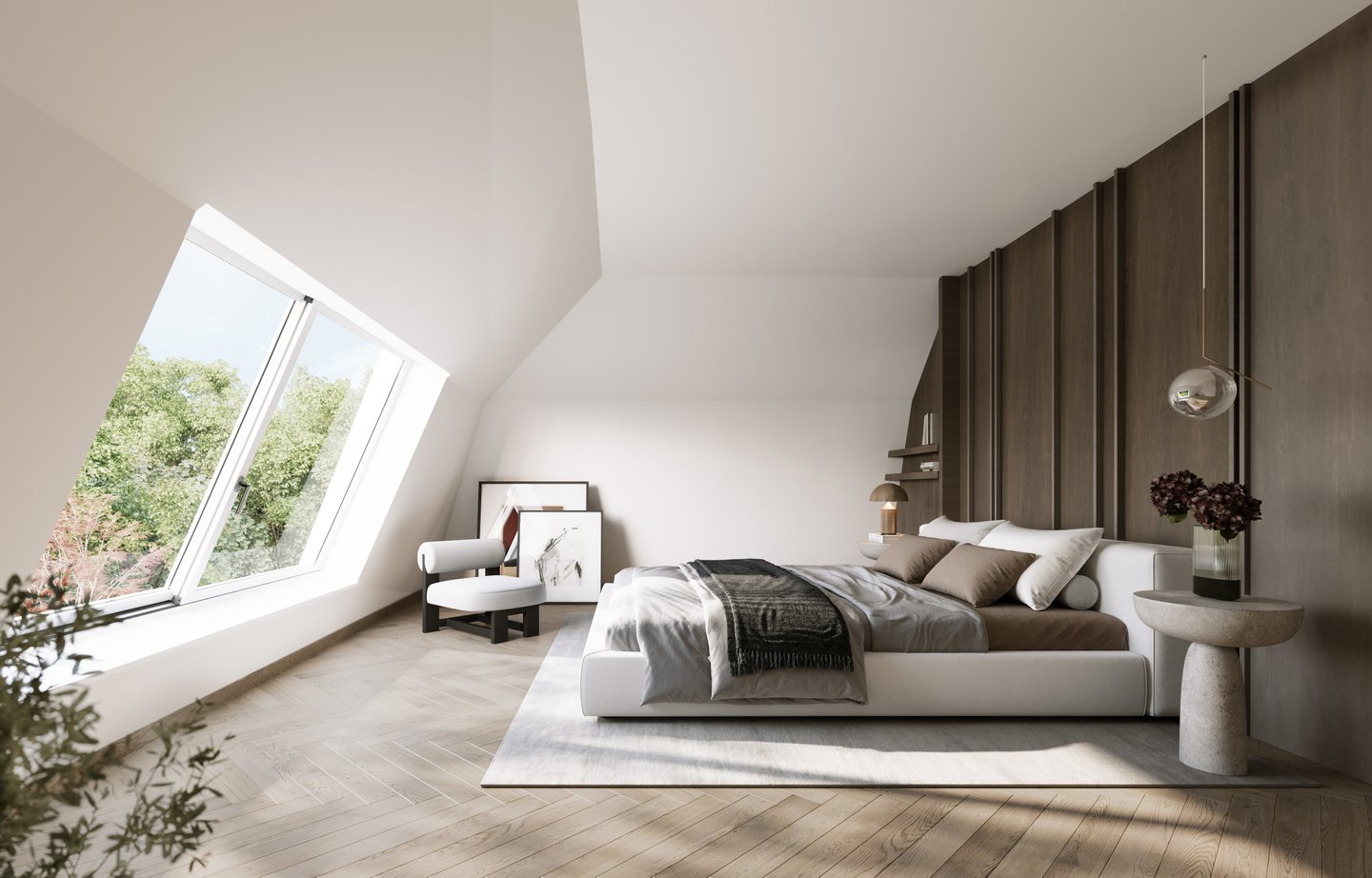 EDITION BH23 wird durch eine klare Formensprache und stilvollen Minimalismus definiert. Das selbstbewusste, zeitlose Design und die moderne Architektur, für die H-I-M als Projektentwickler und Bauträger in München steht, setzt sich innen wie außen fort. Die mit handwerklicher Präzision von erfahrenen Handwerkern ausgeführten traditionellen Putzvarianten, wie Kammzug und Besenstrich strukturieren die Kubatur und harmonieren mit dem kontrastreichen Bronzeton der bodentiefen Holz-Aluminium-Fenster, die in ihren Proportionen und Konstruktion auf eine ausgewogene Fassadengestaltung ausgerichtet sind.