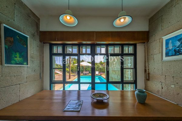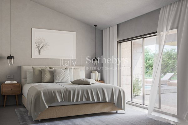 Von Anfang an in die Natur eingebettet, wurde es so konzipiert, dass es vom thermischen Komfort der Erdmasse profitiert, die im Sommer die Hitze und im Winter den frischen Mistral abmildert. Umwelt- und energieeffizient, umgeben von Wacholderbüschen und mediterraner Vegetation, wird das Haus über einen mit Trachyt gepflasterten Weg und einen Pool erreicht, die zum großzügigen Wohnbereich führen. Wohnzimmer, Essbereich und Küche sind harmonisch miteinander verbunden und durch wertvolle Trachytwände akzentuiert. Zwei separate Schlafbereiche beherbergen insgesamt sechs Schlafzimmer und fünf Bäder.