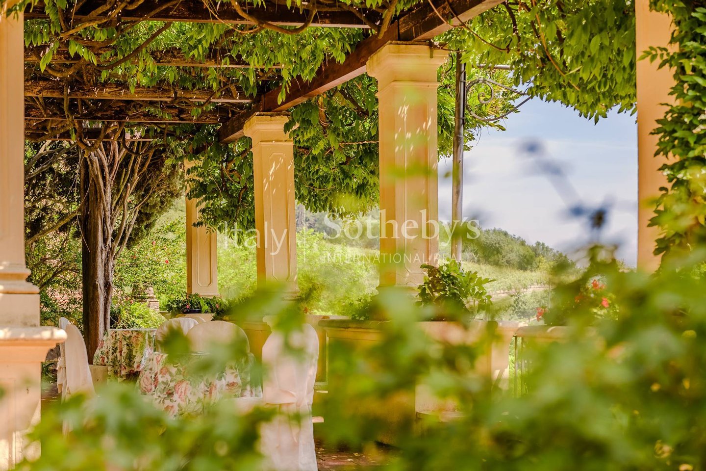 Die Liegenschaft verfügt derzeit über fünf Schlafzimmer, jeweils mit eigenem Bad, repräsentative Räume und helle Salons mit weitem Blick ins Grüne. Der italienische Garten, der auf einer Panoramaterrasse thront und von alten Steinmauern getragen wird, wurde in der ersten Hälfte des 20. Jahrhunderts vom berühmten Landschaftsarchitekten Giuseppe Roda aus Turin gestaltet. Der Innenhof, reich an originalen architektonischen Details, bietet den perfekten Rahmen für Empfänge, private Abendessen, kulturelle Veranstaltungen oder einfach entspannte Momente.