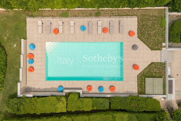 Im Außenbereich rahmt ein panoramischer Garten den herrlichen Pool mit Sonnenterrasse ein, von dem aus sich ein unvergleichlicher Blick auf die gesamte Alpenkette eröffnet.