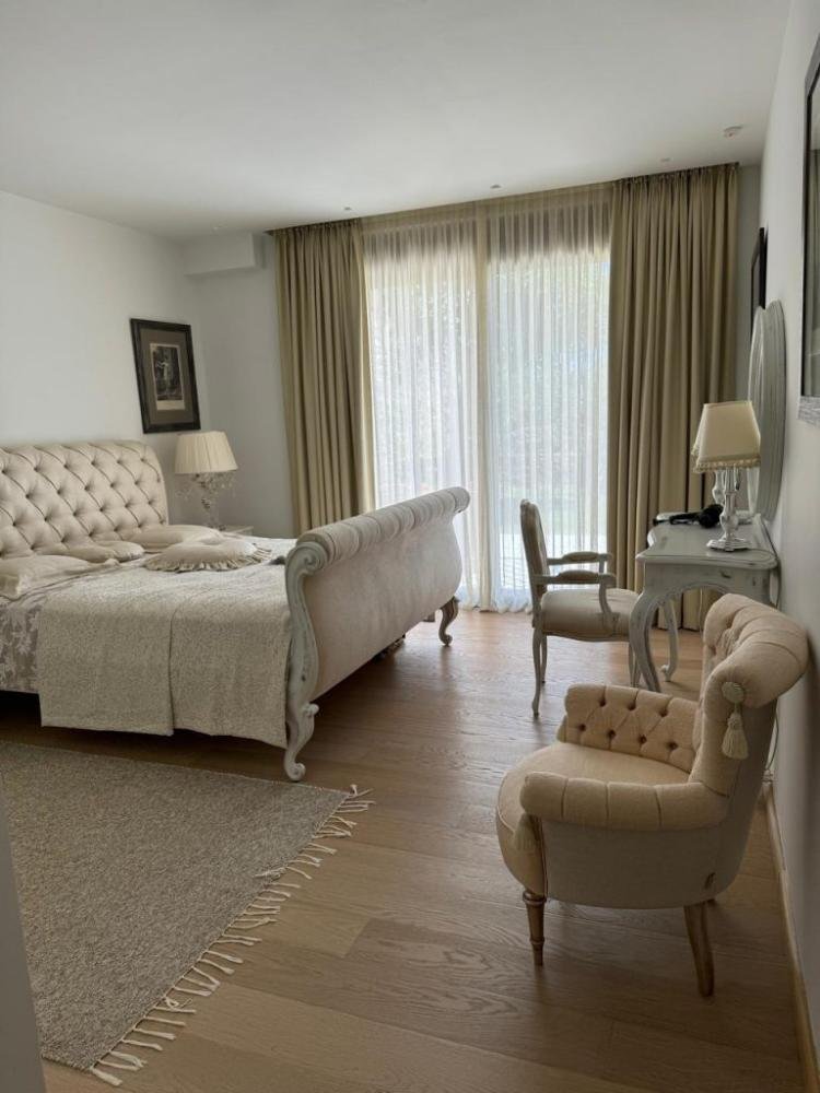 Die Villa bietet hohen Wohnkomfort und benötigt keine Renovierungsarbeiten. Die Inneneinrichtung ist komplett mit hochwertigen, individuell gefertigten Möbeln. Der moderne Stil mit antiken Drucken, edlen Tapeten und Stoffen schafft eine elegante und stilvolle Atmosphäre.