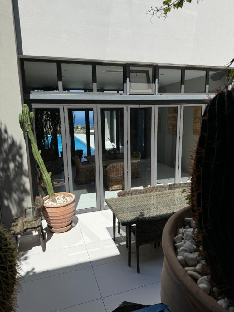 Erdgeschoss: Hier befindet sich ein Wohnzimmer mit Küche, die nahtlos in einen Grillbereich und ein Panorama-Esszimmer mit bodentiefen Fenstern und Klimaanlage übergeht. Außerdem gibt es ein Gäste-WC und einen gut ausgestatteten Hauswirtschaftsraum (Waschmaschine, Trockner und Bügelbrett). Von hier aus gelangt man in einen Loungebereich mit Pool und atemberaubender Aussicht.