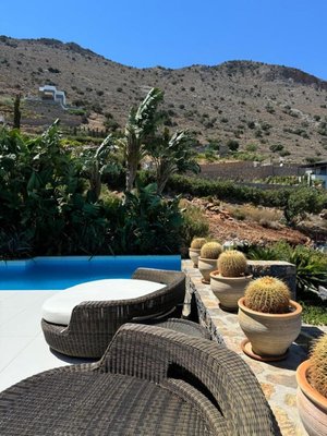 Diese Villa, ein herausragendes Beispiel architektonischer Handwerkskunst mit spektakulärem Blick auf die Insel Spinalonga (UNESCO-Weltkulturerbe), befindet sich in einer exklusiven, bewachten Anlage mit sechs hochwertigen Villen. Der 2014 eröffnete Komplex besticht durch seine sorgfältige Gestaltung und Ausstattung, die durch antike Stiche, Wandteppiche und edle Textilien eine einzigartige Verbindung von Eleganz und Komfort schafft.