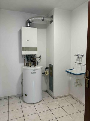 Die barrierefreie Wohnung ist mit einem hell gefliesten Dusch-/Wannenbad ausgestattet. Im Abstellraum ist die BUDERUS Heiztherme, welche 2017 erneuert wurde, gelegen. Ein Hausanschlussraum am Eingang kann ebenfalls zum Abstellen genutzt werden.