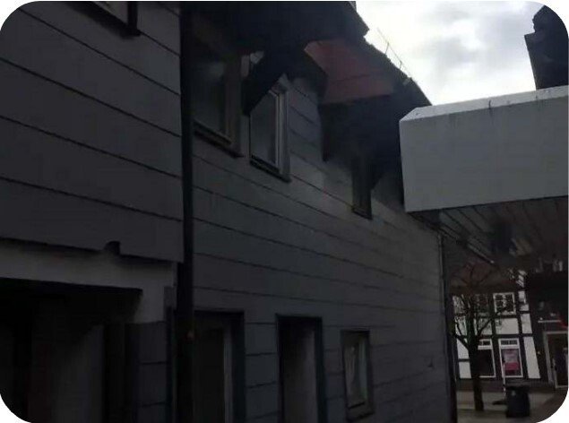Die hintere Immobilie ist sanierungsbedürftig (Dachstuhlbrand). Auch beim vorderen Objekt sind Sanierungsarbeiten notwendig.