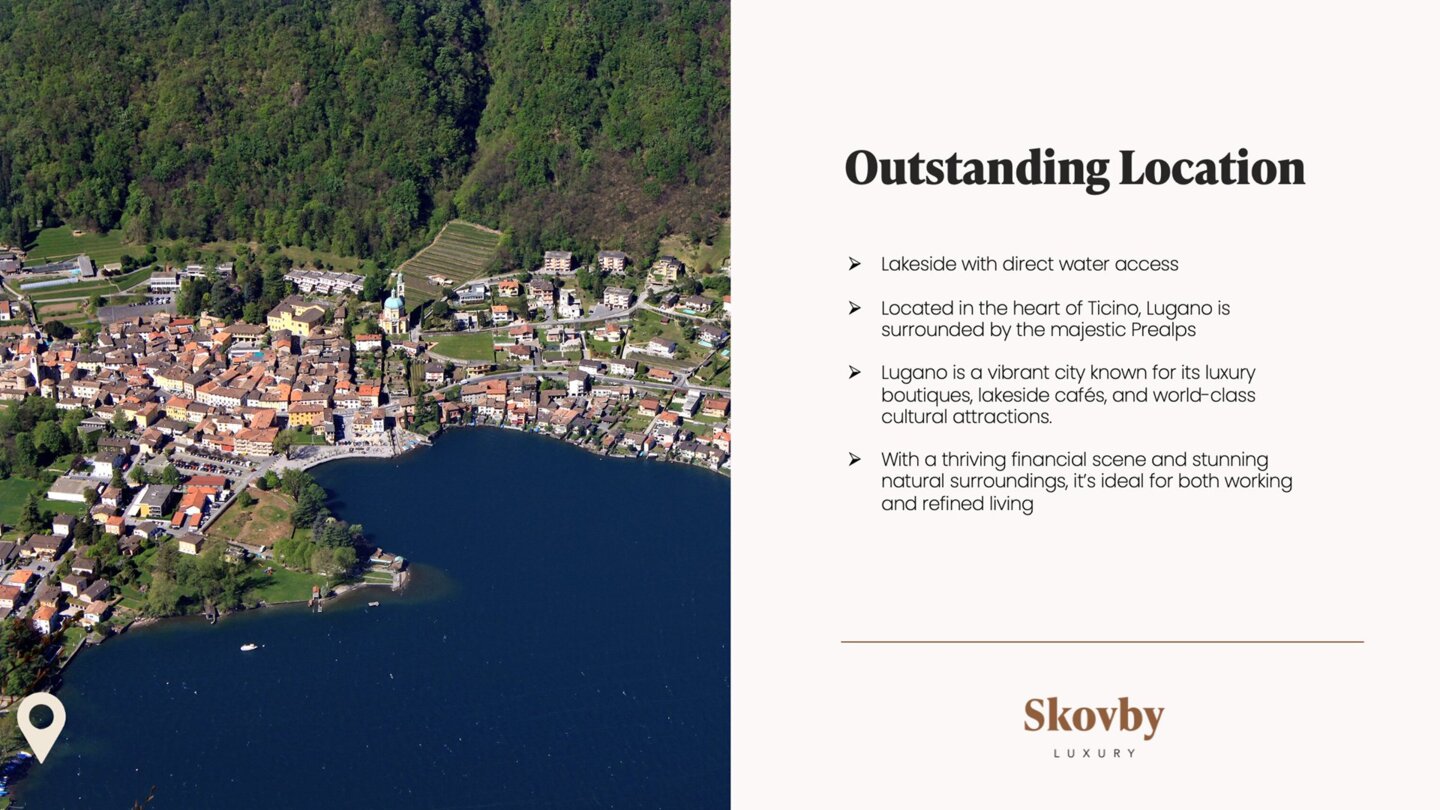 Direkt am Seeufer gelegen, nur 15 Autominuten vom Zentrum von Lugano entfernt, bietet dieses Grundstück die perfekte Mischung aus Ruhe und Bequemlichkeit. Perfekt für eine private Luxusresidenz
