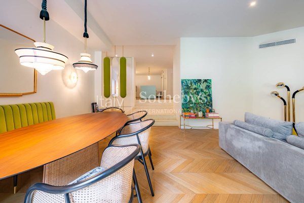Gelegen in einer der begehrtesten Straßen Mailands, direkt zwischen dem ikonischen Modeviertel und dem lebendigen Charme von Brera, wurde diese elegante, möblierte Wohnung von einem Architekturstudio vollständig renoviert und befindet sich in einem exklus