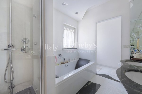In der exklusiven Wohnanlage Olgiata, mit 24-Stunden-Sicherheitsdienst und gepflegten Gemeinschaftsbereichen, befindet sich diese elegante Villa mit einer Wohnfläche von ca. 650 m², eingebettet in einen üppigen privaten Park von 5.000 m². Die