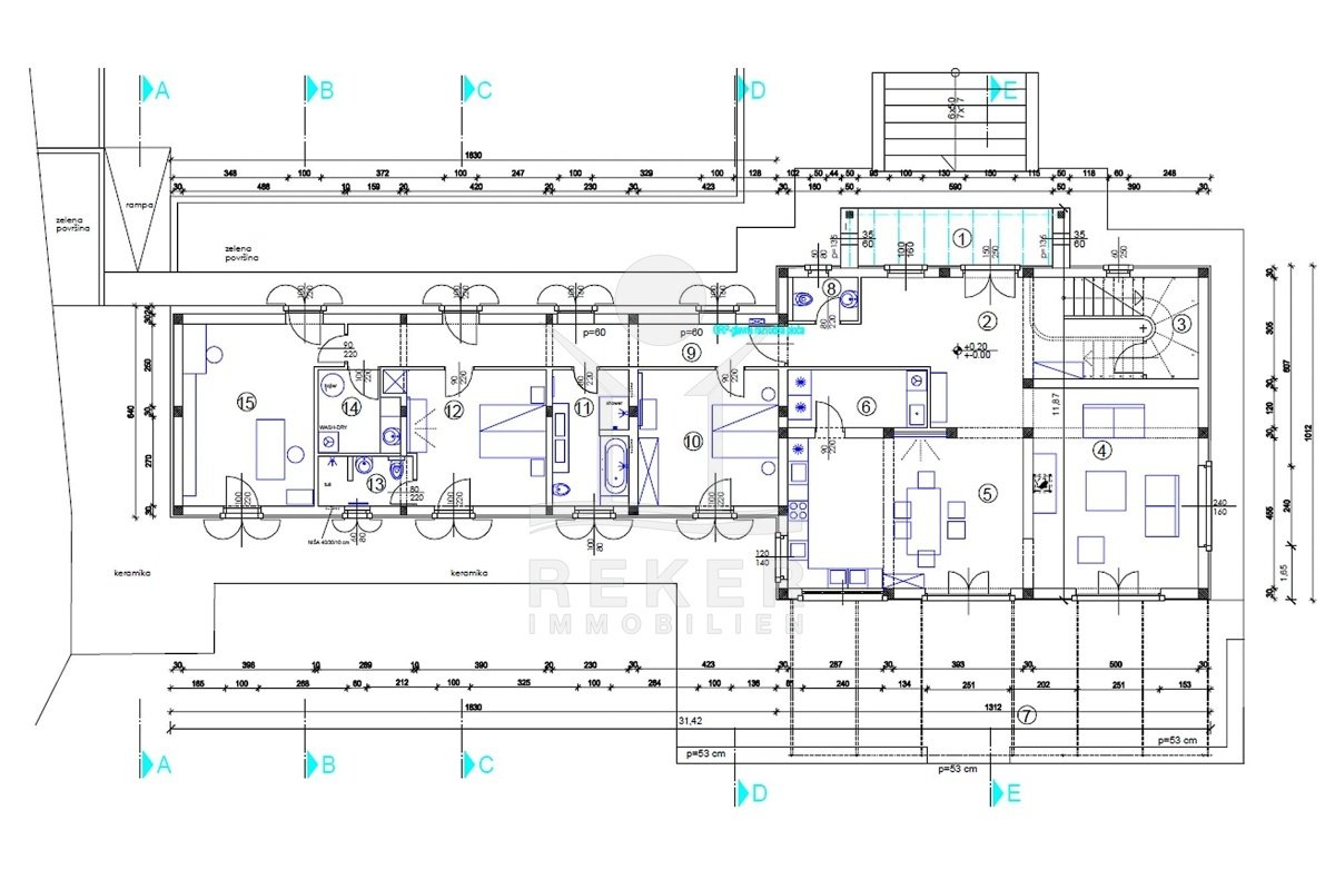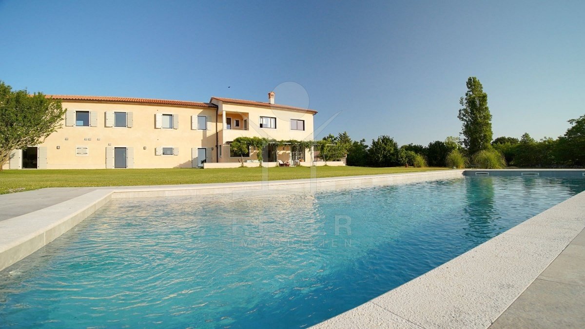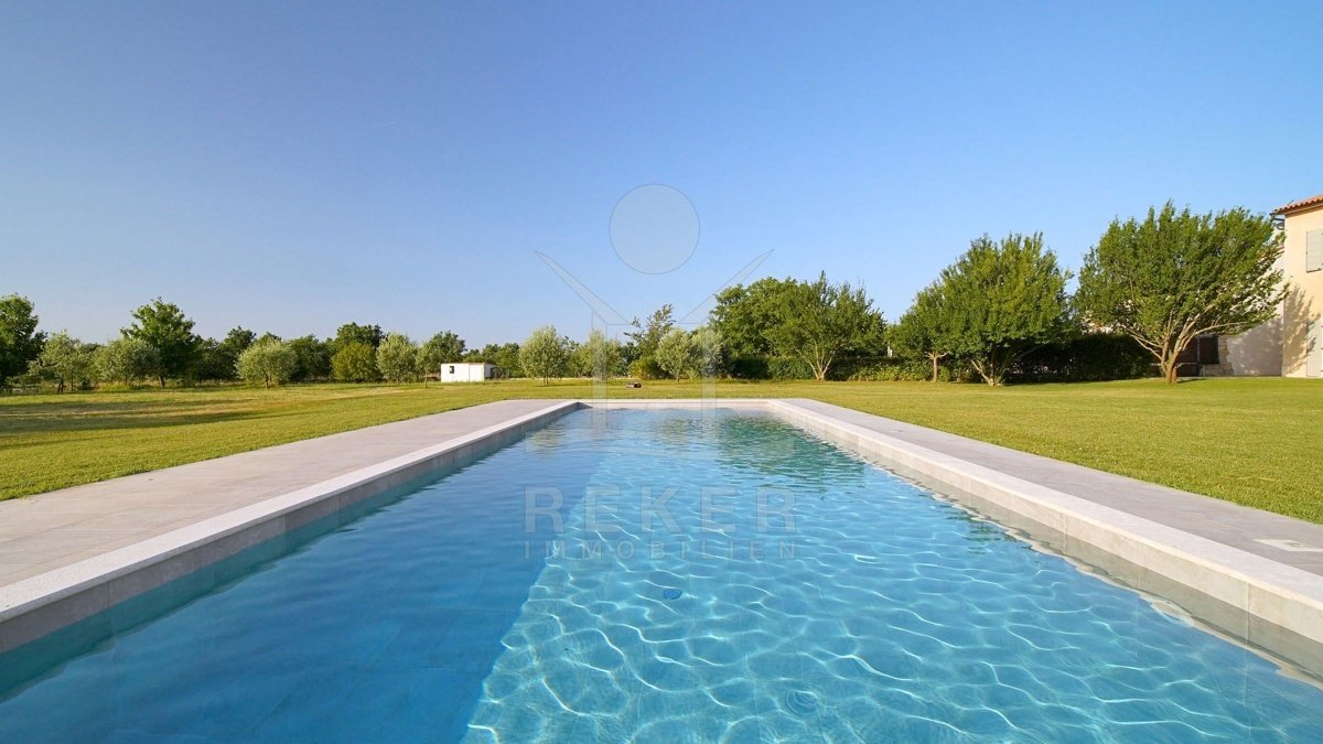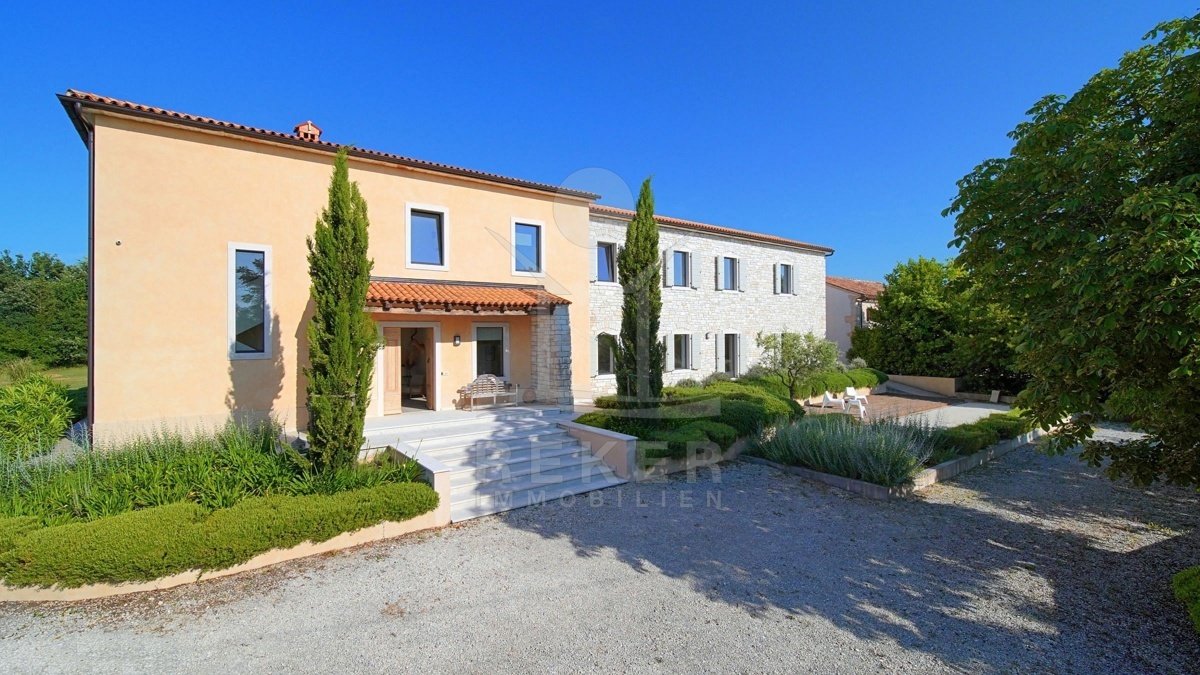 Zwischen Kanfanar und Svetvinčenat, eingebettet in die friedliche Hügellandschaft Istriens, liegt diese beeindruckende Villa auf einem über 6.000 m² großen Grundstück. Hier wohnen Sie in absoluter Ruhe und doch sind Sie in nur 20 Minuten in Rovinj.
