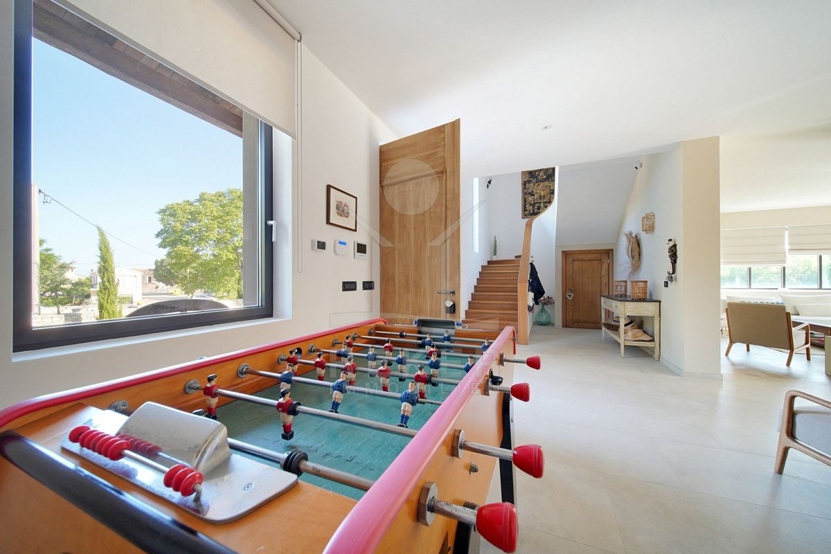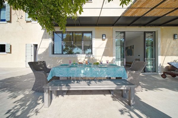 Im Garten kommt sofort Urlaubsgefühl auf: Die Fläche ist liebevoll gestaltet, mit Oleander, Zypressen, Lavendel und gepflegtem Rasen. Ein Highlight ist der große Skimmer-Pool (15 x 5 m) mit gefliestem Sonnendeck – ideal für entspannte Sommertage. Direkt daneben die große Terrasse mit Pergola, Sitzplätzen und Sonnenliegen – perfekt für lange Abende im Freien. Ein kleines Boccia-Feld ergänzt das Angebot. Das separate Nebengebäude fügt sich harmonisch in den Garten ein und bietet Platz für Gäste. Automatische Bewässerung, Tröpfchensystem und Außenbeleuchtung machen das Gesamtbild rund.