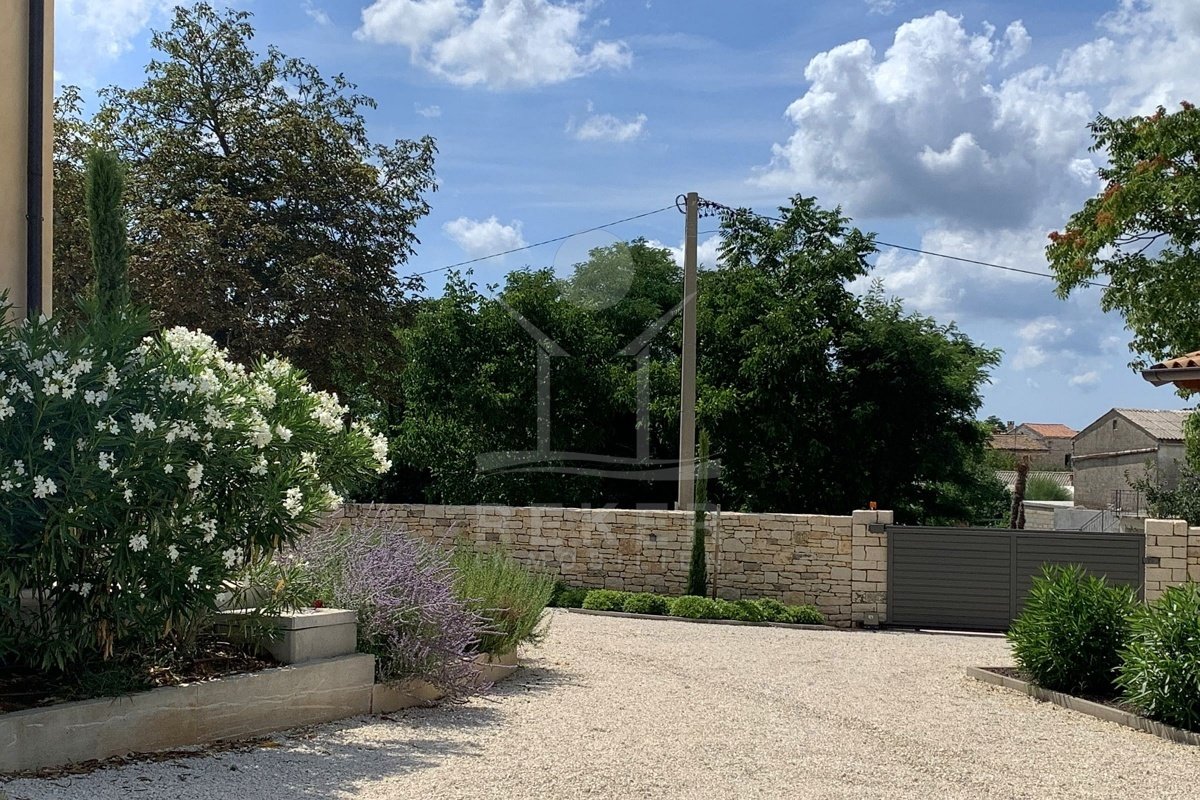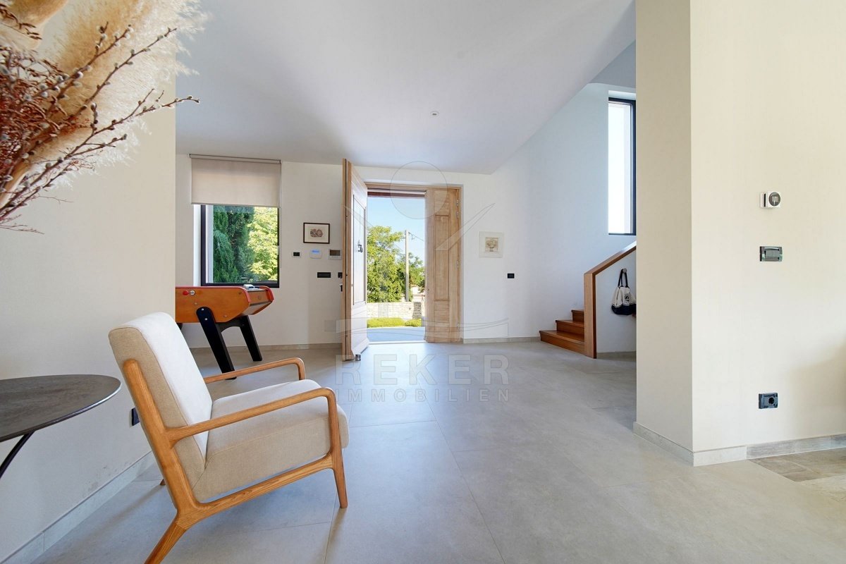 Zwischen Kanfanar und Svetvinčenat, eingebettet in die friedliche Hügellandschaft Istriens, liegt diese beeindruckende Villa auf einem über 6.000 m² großen Grundstück. Hier wohnen Sie in absoluter Ruhe und doch sind Sie in nur 20 Minuten in Rovinj. Die Zufahrt ist asphaltiert, das Gelände von einer traditionellen Steinmauer umgeben. Ein motorisiertes Einfahrtstor sorgt für Sicherheit und Komfort. Der großzügige Vorplatz bietet viel Raum – auch für mehrere Fahrzeuge. Die Umgebung: ländlich, grün, herrlich mediterran.