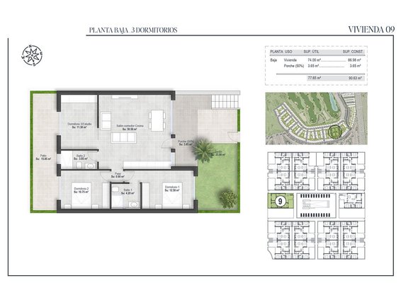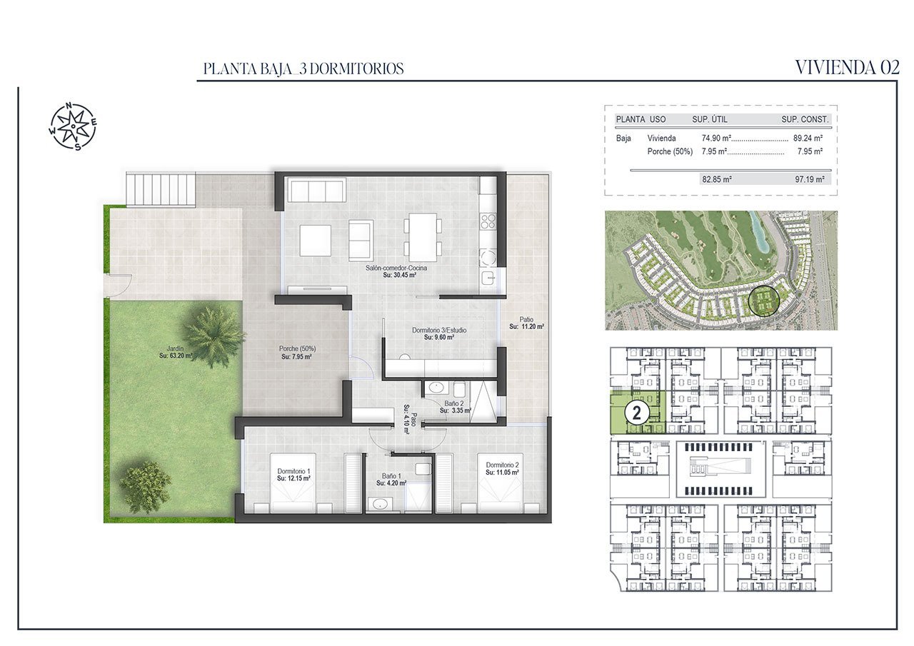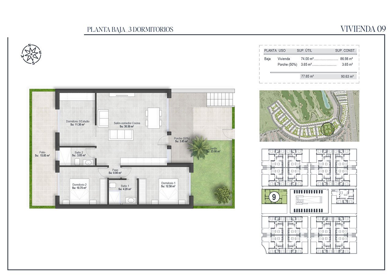 Erdgeschoss-Wohnungen mit 3 Schlafzimmern, 2 Bädern und Gemeinschaftspool in sehr schönem Golf-Resort