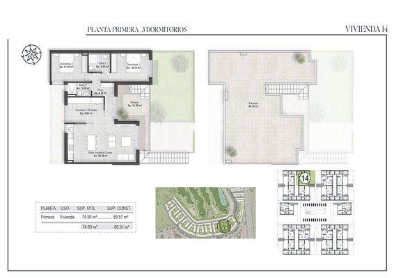 Obergeschoss-Wohnungen mit 3 Schlafzimmern, 2 Bädern, Dachterrasse und Gemeinschaftspool in sehr schönem Golf-Resort