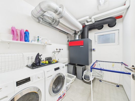 Die moderne Haustechnik, einschließlich Fernwärme-Versorgung, Wasserenthärter und Wohnraumlüftung, gewährleistet ein energieeffizientes und nachhaltiges Wohnen.