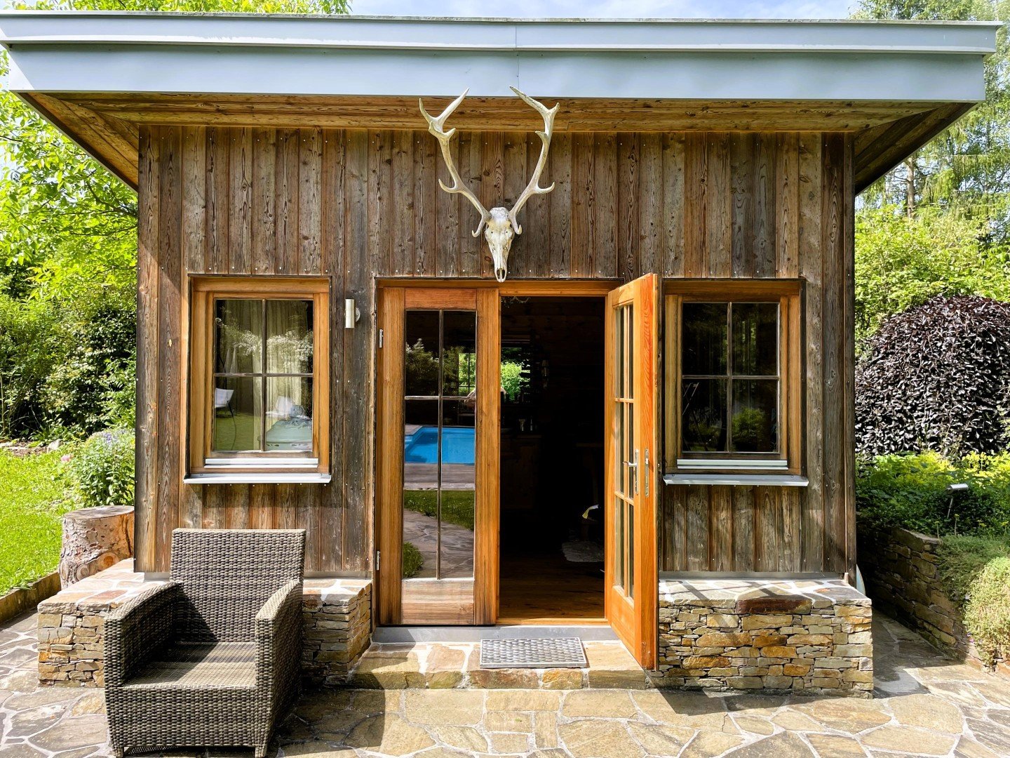 7. Zur Pflege und Nutzung des GARTENS stehen mehrere Qualitätslilegen und Sonnenschirme, eine Schwebeliege, ein Gartenhaus mit vielen Gartengeräten sowie 4 Wasseranschlüsse und ca. 50 m Gartenschläuche bereit.