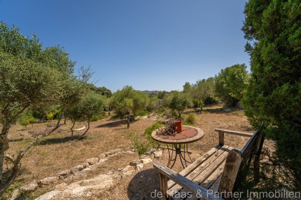 Das Grundstück (ca. 5.502 m²) und der Garten ist wunderschön und mediterran gestaltet mit Palmen, alten Olivenbäumen, Steineichen, Obstbäumen, Oleander und vielen Überraschungen.