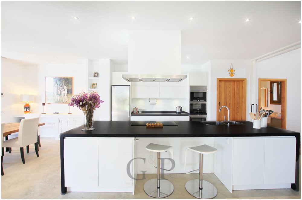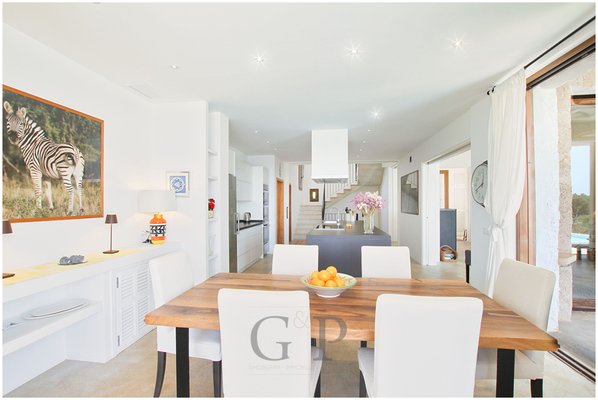 Sowohl vom Wohnzimmer als auch von dem Essbereich gelangen Sie auf die teilweise freien und teilweise überdachten Terrassen, dem Barbecue Bereich und zum Poolbereich.