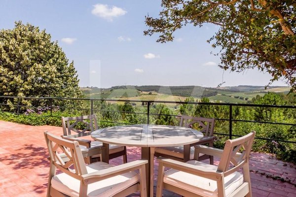 Das Hauptgebäude und die riesige hintere Terrasse bieten einen atemberaubenden Blick auf die 15 Hektar des Anwesens, einschließlich Gärten und Swimmingpool, Anbauflächen, Wiesen, Obstgärten, Gemüsegärten und Bäume, zusätzlich zu den anderen angrenzenden Feldern.