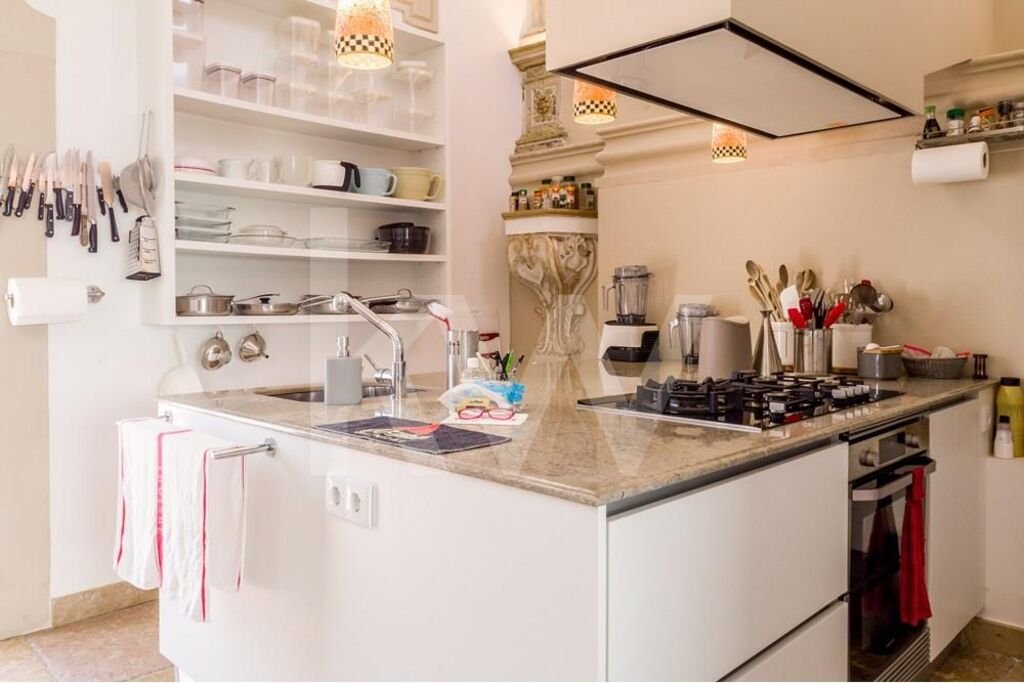 - Untere Etage: 2 unabhängige T1-Apartments, beide mit Küchenzeile und Bad.