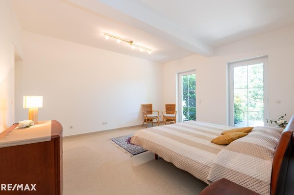 - Schlafzimmer mit Zugang zur Terrasse und eigenem Bad mit Wanne und WC