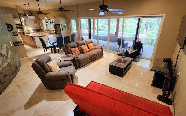 LUXUSHAUS AN EINEM 1 KM LANGEN PRIVATSTRAND Umgeben vom Dschungel, fühlen Sie sich eins mit der Natur in diesem unglaublichen Haus am Strand. DAS ZUHAUSE Perfekt isoliert mit einem Doppeldach und erdbebentechnisch gebaut, ist das 257.776 m2 große Haus gebaut wie kein anderes in der Region. Spüren Sie den Luxus, der aus jedem Detail dieses prächtigen Hauses strahlt, von den zylindrischen Schieferwanddetails bis hin zu den italienischen Fliesen und Quarz-Arbeitsplatten, kein Zentimeter des Hauses wurde vergessen. Wenn die Jalousien geschlossen sind, könnten Sie Ihren Standort mit dem Penthouse eines protzigen Stadtturms verwechseln, aber öffnen Sie die großen Bildschirmtüren und das Rauschen des Ozeans, die ansässigen Truppen von Kapuzinern, gefährdeten Mantelbrüllern und Nasenbären werden Sie schnell daran erinnern, dass Sie sich in einem Strandparadies befinden. Dieses Haus wurde bis zum Äußersten konstruiert und so konzipiert, dass es jeder Naturkatastrophe standhält, über die Sie sich Sorgen machen könnten, sodass Sie sich in Ihrer Kingsize-Master-Suite ausruhen können. Das Haupthaus verfügt über 1 Schlafzimmer , 1,5 Badezimmer, die Küche/ den Essbereich sowie eine private Suite mit eigenem Eingang über die überdachte 382,43 m2 große Poolterrasse und den Wohnbereich im Freien. Die Küche ist für die Person konzipiert, die gerne kocht, mit Platz für einen Küchenhelfer und/oder mehrere Köche. Ausgestattet mit: 2 voll ausgestatteten Kühlschränken, Gefrierschrank, eingebautem Doppelofen, Mikrowelle, Geschirrspüler, Gas- und Induktionsherd, 2 Spülbecken und verfügt über eine große begehbare Speisekammer und importierte deutsche Schränke. Die Arbeitsplatten sind zum Sterben schön, brasilianische Granit-Arbeitsplatten in Flussfarben. Es gibt eine Fülle von Steckdosen, wo immer Sie sie brauchen, für all die schön verstauten Küchenhelfer, von denen Sie träumen können. Die Master-Suite wird auf der einen Seite von einem geräumigen Badezimmer und auf der anderen Seite von einem großen, geschlossenen Büroraum flankiert, der sich zum Pooldeck hin öffnet. Der begehbare Kleiderschrank ist fast groß genug, um ein eigenes Schlafzimmer zu sein, und ist mit einer eigenen Klimaanlage ausgestattet, um Feuchtigkeit nicht zu speichern. Das Anwesen ist einkommensschaffend mit 2 weiteren Mieteinheiten in dem 176 m2 großen Gästehaus. Über der Werkstatt im zweiten Stock befindet sich eine große Junggesellensuite mit eigener Veranda und einer großen Küche und einem Badezimmer sowie einem Kingsize-Bett. Im Erdgeschoss befindet sich eine zweite Bachelor-Suite mit einem Queensize-Bett sowie einer eigenen Küche und einem Badezimmer. DAS GRUNDSTÜCK 39 Meter Strand und 1 Hektar üppiger Dschungel sind sich selbst überlassen, seit das Haus vor 10 Jahren fertiggestellt wurde. Die Ergebnisse sind atemberaubend. Der Schatten des Blätterdachs und das natürliche Gleichgewicht, das Mutter Natur bietet, reduzierten die Anzahl der blutsaugenden Wanzen auf relativ Null. Ein gesundes Ökosystem macht das Leben im Dschungel am Strand nicht nur für den Hausbesitzer komfortabel. Das Anwesen wird mit ansässigen Tieren und Vögeln aller Art geteilt, Affen laufen über das Dach, Nasenbären spielen und jagen in den Bäumen, Schildkröten legen ihre Eier ab und schlüpfen am Strand. Die tägliche Beobachtung der vielen Tiere und Vögel in ihrer natürlichen Umgebung, ohne sich darum zu kümmern, gejagt zu werden, macht es üblich, sich innerhalb von 3 oder 4 Metern (10 bis 15 Fuß) von ihrer Anwesenheit aufzuhalten. Diese vierbeinigen Nachbarn sind die einzigen Menschen, die Sie in einem Umkreis von 350m sehen werden. Das Haus ist von Hügeln und Bäumen umgeben, die absolute Privatsphäre vor aktuellen und zukünftigen Nachbarn bieten, diese Immobilie ist die nächstgelegene zum "Private Beach", die wir je aufgelistet haben. DER TRAUM Das Luxury Beach Home Nested in Nature ist natürlich perfekt für einen BNB: Bereits mit 3 Mieteinheiten und ausreichend Parkplätzen in der 3-Bay-Garage eingerichtet, können Sie dieses einzigartige Paradies mit Tierfreunden aus der ganzen Welt teilen. Das Luxury Beach Home Nesteld in Nature ist perfekt für die Tierfotografie und den Schutz von Schildkröten: Laden Sie die Leute zu einer seltenen und sicheren Gelegenheit ein, Nahaufnahmen von einigen der beliebtesten Arten Panamas zu machen, darunter die extrem gefährdete Alouatta coibensis trabeata, allgemein bekannt als der Azuero-Brüllaffe, der nur auf der Azuero-Halbinsel vorkommt und als vom Aussterben bedroht eingestuft wurde. Im Jahr 2013 wurde geschätzt, dass von der gesamten Unterart noch etwa 3.092 Individuen übrig geblieben sind (Méndez 2013). Aber bitte - keine Fütterung erlaubt! Das luxuriöse Strandhaus eingebettet in die Natur ist perfekt für Ihr eigenes geheimes Versteck: Buchstäblich vor der Öffentlichkeit durch einen dichten Dschungel und eine 2 km lange Privatstraße verborgen, genießen Sie die absolute Privatsphäre dieses unglaublichen Anwesens. BESONDERHEITEN Eine Besonderheit dieser Immobilie ist, dass 3 der 4 Wohnbereiche und das Pooldeck rollstuhlgerecht sind. Das Anwesen liegt 6 Meter (19 Fuß) über dem Meeresspiegel, so dass ein Anstieg des Meeresspiegels für Hunderte von Jahren kein Problem darstellt. In den letzten 12 Jahren haben die Besitzer berichtet, dass der Rekord für die Anzahl der Personen, die gleichzeitig am Strand sind, bei 17 an einem Tag an Ostern liegt, wenn man normalerweise alleine ist. Direkt vor dieser Unterkunft befindet sich einer der besten und sichersten Badeplätze entlang der Küste. Panamas Grundsteuerbefreiung für dieses Grundstück ist immer noch in Kraft und kann verlängert werden. (Keine Grundsteuern für die kommenden Jahre).