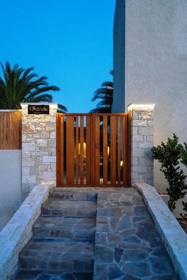 Abgelegener Kiesstrand direkt neben dem kleinen Hafen und dem Wäldchen von Apiganias, wo im Sommer Konzerte und kulturelle Veranstaltungen stattfinden.