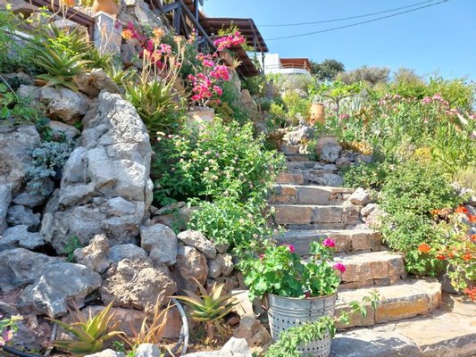 Sie befinden sich auf einem 4.000 m² großen Grundstück. Es gibt 2 Erdgeschosswohnungen, 2 Maisonette-Wohnungen und ein Studio-Apartment. Alle 5 Apartments sind insgesamt 140 m² groß. Sie sind voll möbliert und verfügen über tolle Balkone mit Meerblick. Die Apartments sind sehr gut erreichbar und bieten Berg- und Meerblick. Außerdem verfügen sie über einen Parkplatz, WLAN und Sonnenkollektoren.