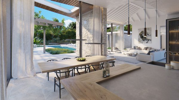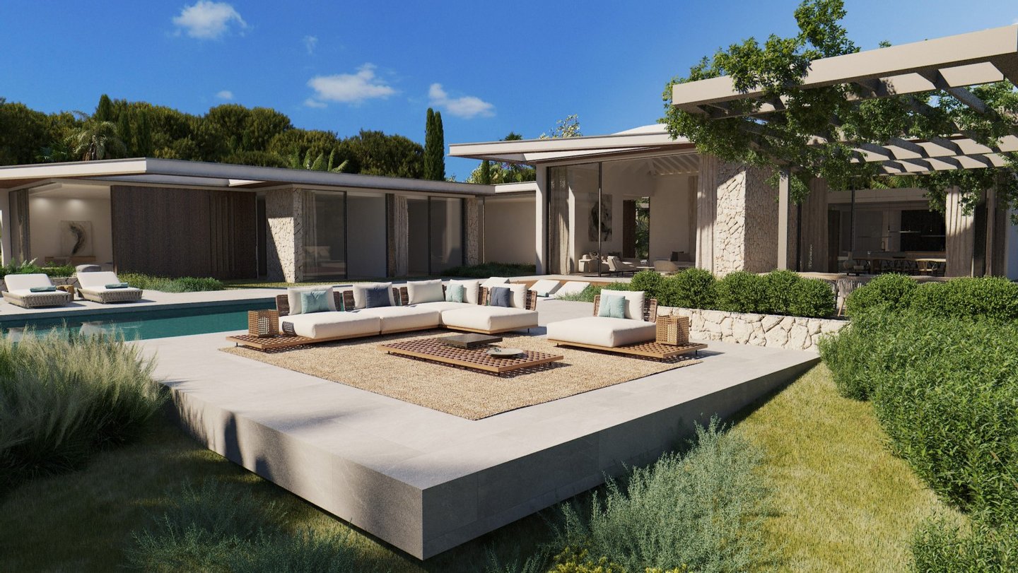 Diese Neubauimmobilie wird im Jahr 2026 fertiggestellt und verfügt über eine Grundstücksfläche von ca. 3.384 m² sowie eine bebaute Fläche von ca. 756 m². Die auf einer Ebene im Bungalowstil erbaute Villa bietet ein helles Entrée mit angrenzendem Wohn- und Essbereich, eine offene Einbauküche mit modernsten Elektrogeräten und direktem Zugang zur Poolterrasse, vier Schlafzimmer mit Bädern en Suite, zwei Gäste-WCs, einen Hauswirtschaftsraum sowie diverse Abstellräume. Des Weiteren verfügt die Immobilie über ein Untergeschoss mit Platz für bis zu drei Pkws, drei weitere Räume zur freien Gestaltung und ein zusätzliches Badezimmer. Hier besteht die Möglichkeit, einen Fitnessraum oder ein Heimkino einzurichten. Hier trifft edles Design auf modernste Technik. Die Ausstattung wird höchsten Ansprüchen gerecht und beinhaltet: Domotik-System (computergesteuerte Haustechnik), Fußbodenheizung, Kamin, Klimaanlage, neueste Solartechnologie, doppelt verglaste Fenster, Telefon- und Glasfaseranschluss, Einbauschränke, fünf PKW-Stellplätze und vieles mehr. Der gepflegte Außenbereich mit privatem Swimmingpool und Jacuzzi, umgeben von Sonnenterrassen, sowie der schöne Garten mit automatischer Bewässerung runden dieses interessante Angebot ab.
