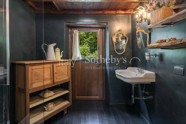 Die Villa bietet eine Wohnfläche von ca. 120 m², verteilt auf stilvolle, gemütliche Räume. Die zwei Schlafzimmer mit jeweils eigenem Bad garantieren Privatsphäre und Rückzug. Der Wohnbereich mit eleganten Antiquitäten umfasst zusätzlich ein Schlafsofa für Gäste. Eine verglaste Holzveranda mit direktem Blick auf den See schafft eine traumhafte Kulisse für entspannte Stunden und Momente der Einkehr. Besonders stimmungsvoll sind die Bibliothek, gefertigt aus altem Kastanienholz, und die traditionsreiche Küche mit einem in Granit gehauenen Spülbecken - eine Hommage an die lokale Handwerkskunst.