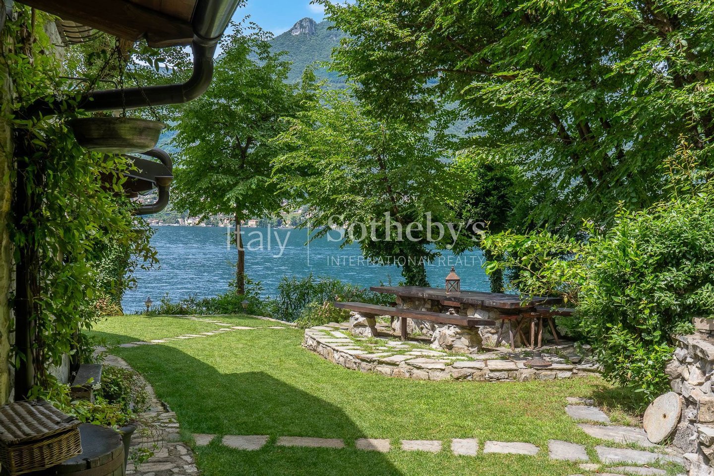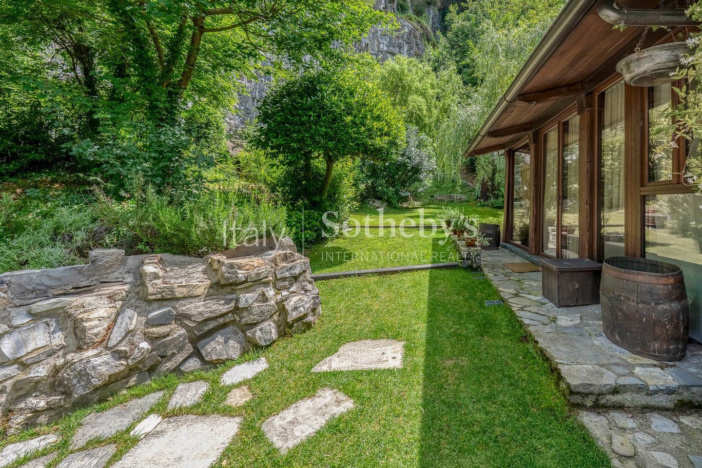 Im ca. 3.000 m² großen privaten Garten wechseln sich gepflegte Wiesen und naturbelassener Wald harmonisch ab und verschmelzen mit der Felswand im Hintergrund. Eine kleine Liegewiese am Wasser, gesäumt von glattgeschliffenen Felsen, erinnert an die langsamen Tage der Fischer und das Leben am See. Ein Grillplatz mit Esstisch und Liegestühlen lädt dazu ein, das Leben im Freien in vollkommener Ruhe zu genießen.