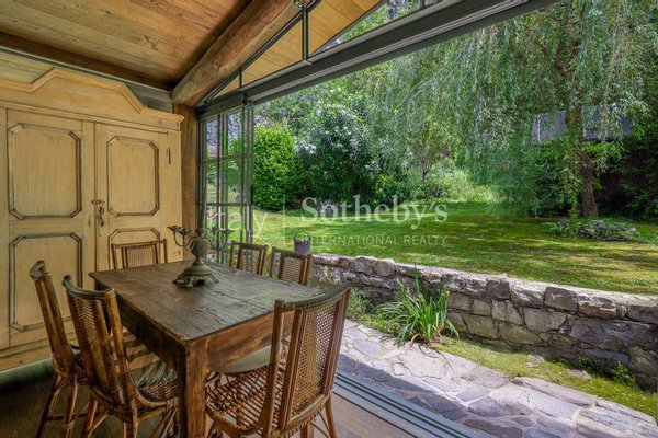 Im ca. 3.000 m² großen privaten Garten wechseln sich gepflegte Wiesen und naturbelassener Wald harmonisch ab und verschmelzen mit der Felswand im Hintergrund. Eine kleine Liegewiese am Wasser, gesäumt von glattgeschliffenen Felsen, erinnert an die langsamen Tage der Fischer und das Leben am See. Ein Grillplatz mit Esstisch und Liegestühlen lädt dazu ein, das Leben im Freien in vollkommener Ruhe zu genießen.