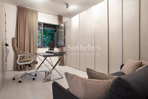 Die Immobilie erstreckt sich über drei Etagen und beeindruckt durch die perfekte Harmonie aus zeitgenössischem Design, funktionaler Raumaufteilung und hochwertigen Materialien. Im Untergeschoss befindet sich ein unabhängiger Gästebereich, bestehend aus Wohnzimmer, Schlafzimmer mit Doppelbett und Bad - ideal für Gäste oder Personal.